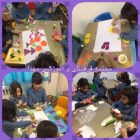 همچنین برای تزیین کلاس و ابجاد حال و هوای پاییزی، برگ های کاغذی بریدند و رنگ کردند تا مهارت حرکتی ظریف و دقت دیداری شان تقویت شود.