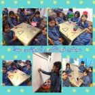 در ابتدای طرح درس پاییز، شعر خواندند و بازیِ جفت کردن دستکش و جوراب را انجام دادند. پس از صرف میوه ای پاییزی در زنگ ریاضی، با مداد رنگی ها مثلث ساختند و به نوبت پای تخته هم مثلث کشیدند و این زنگ را باساخت کاردستی گروهی به صورت اشکال هندسی مختلف به پایان رسید.