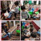 در کلاس سه ساله ها با روبان های رنگی در دنیای کودکانه لحظات شاد و پر نشاطی برای فرزندانمان ایجادشد. در مهمان بازی با میوه از میهمانان پذیرایی کردیم و هنگام اذان هم هر کسی دوست داشت نماز خواند؛ توپ‌های رنگی را به هم قل دادیم، نشانه گیری را تمرین کردیم و با اسم های همدیگر آشنا شدیم؛ با آبرنگ نقاشی کشیدیم و با کاغذ رنگی کلاژ درست کردیم و توی خونه حیاطی بازی کردیم.