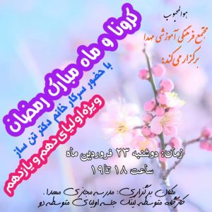 به این منظور،کارگاه “کرونا و ماه مبارک رمضان” با حضور سرکارخانم دکتر مژگان تن ساز در مدرسه مجازی مهدا برگزار شد.